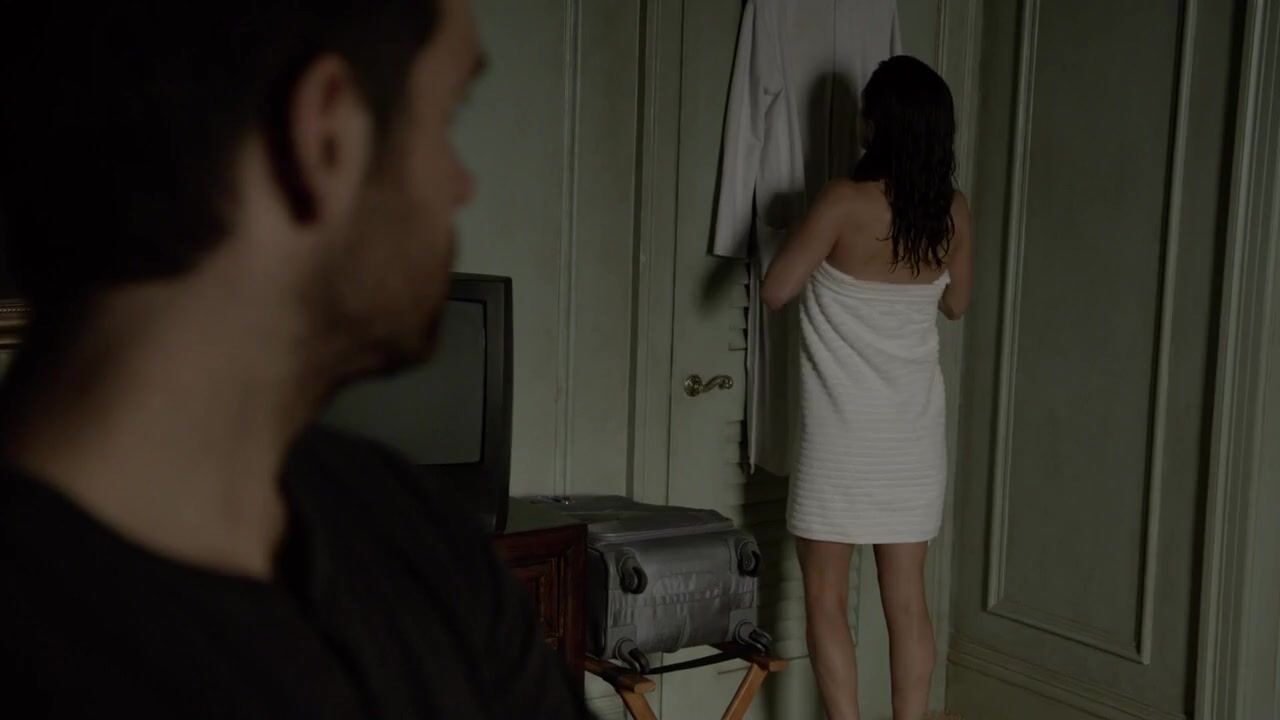 Eliza Dushku naked after a shower puts on a bathrobe